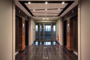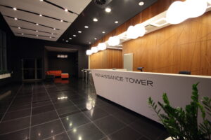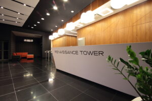 Projekt holu wejściowego i windowego w biurowcu Renaissance Tower
