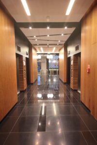 Projekt wykonywałam jako podwykonawca na zlecenie zaprzyjaźnionej pracowni firmy STOFORM STUDIO. Zadanie [polegało na unowocześnienie wystroju holu wejściowego, wraz z recepcją i strefą wypoczynku oraz holu wejściowego na parterze oraz na kolejnych kondygnacjach.